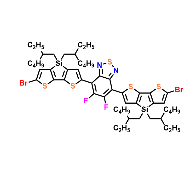 中文別名:4,7-雙(6-溴-4,4-雙(2-乙基己基)-4H-硅基[3,2-b:4,5-b']二噻吩-2-基)-5,6-二氟苯并[c][1,2,5]噻二唑
